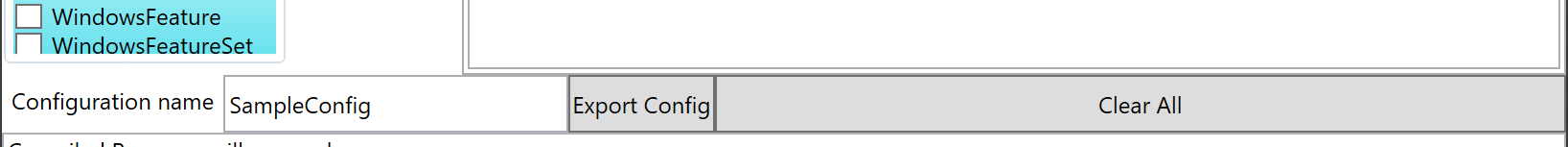 $WPFClearv2.Add\_Click({ $WPFResources.Children | ? Name -ne Clear | % {$\_.IsChecked = $False} $WPFDSCBox.Text= "Compiled Resource will appear here" })