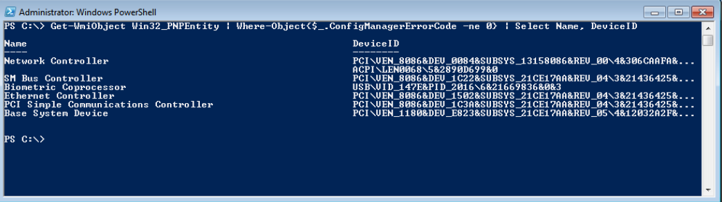Using Johan’s code as a starting point, I’ve expanded it out, to now locate missing devices, grab the hardware and vendor IDs and then search the database for the device name using PowerShell!